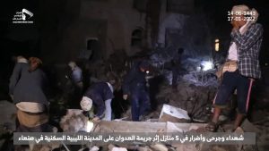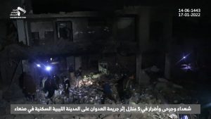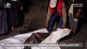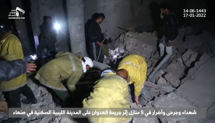 ?? شهداء وجرحى بينهم نساء وأضرار في 5 منازل إثر جريمة العدوان على المدينة الليبية السكنية في صنعاء وعملية البحث تحت الأنقاض مستمرة 14-06-1443 | 17-01-2022 On يناير 18, 2022 Share حجة نيوز Share FacebookTwitterGoogle+ReddItWhatsAppPinterestالبريد الإلكتروني