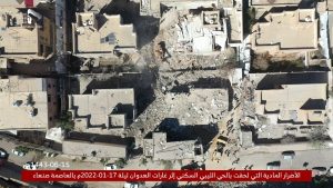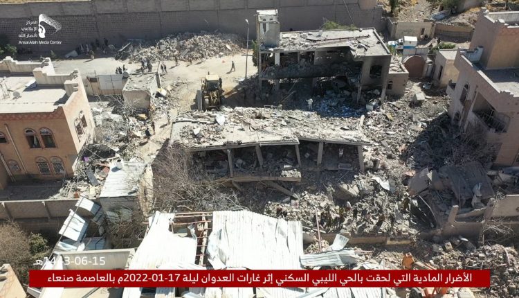 ?? صور إضافية تظهر الدمار الكبير الذي لحق بالحي الليبي السكني بالعاصمة صنعاء إثر غارات طيران العدوان الأمريكي السعودي الإماراتي 15-06-1443 | 18-01-2022 On يناير 18, 2022 Share حجة نيوز Share FacebookTwitterGoogle+ReddItWhatsAppPinterestالبريد الإلكتروني