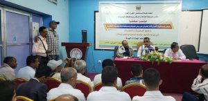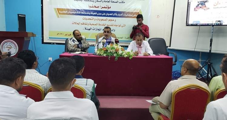 مؤتمر صحفي بهيئة مستشفى الثورة بـ الحديدة يعرض إحصائيات أضرار العدوان على مبنى الهيئة والتحديات نتيجة القرصنة على الوقود