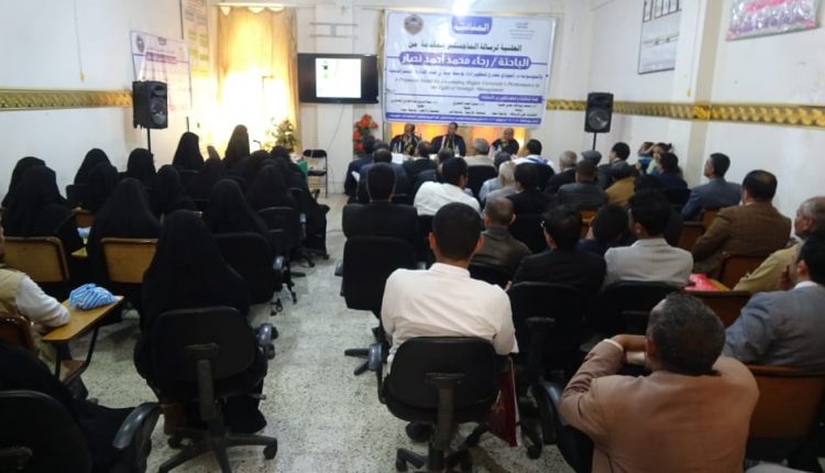 حصلت الباحثة رجاء محمد نصار على درجة الماجستير بتقدير امتياز مع مرتبة الشرف من كلية التربية والعلوم الانسانية قسم العلوم التربوية بجامعة حجة عن رسالتها الموسومة بـ” نموذج مقترح لتطوير أداء جامعة حجة في ضوء الإدارة الاستراتيجية “.