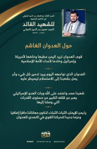أبرز ما جاء في كلمة السيد القائد عبدالملك بدرالدين الحوثي في الذكرى السنوية لإستشهاد السيد القائد حسين بدرالدين الحوثي (رضوان الله عليه) Last updated فبراير 27, 2022 Share للإستماع إلى الكلمة كاملة عبر تطبيق soundcloud soundcloud.app.goo.gl/72M3W حجة نيوز Share FacebookTwitterGoogle+ReddItWhatsAppPinterestالبريد الإلكتروني