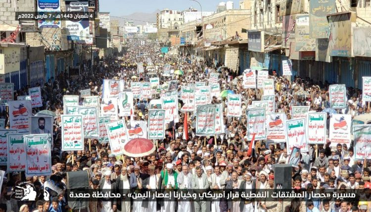 ? صور من مسيرة “حصار المشتقات النفطية قرار أمريكي، وخيارنا إعصار اليمن ” في محافظة صعدة 04-08-1443 | 07-03-2022 On مارس 7, 2022 Share حجة نيوز Share FacebookTwitterGoogle+ReddItWhatsAppPinterestالبريد الإلكتروني