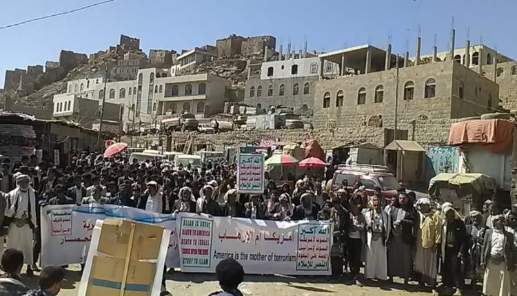 وردد المشاركون في المسيرة الشعارات المنددة بجرائم العدوان واستمرار الحصار والمؤكدة على تعزيز التلاحم والاصطفاف ورفد الجبهات بقوافل الرجال والعطاء وتقديم الغالي والنفيس حتى تحقيق النصر المبين.