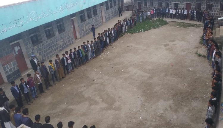 نظمت مدرسة الشهيد يحي المتوكل الثانوية بالشغادرة محافظة حجة اليوم وقفة إحتجاجية بعنوان سبع سنوات من العدوان ودعماً حملة إعصار اليمن.