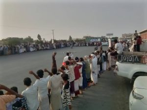 بدوهم أكد مشايخ وأعيان ووجهاء مربع تهامة في وقفة على هامش القافلة، الجهوزية للتحرك إلى لميادين الصمود وتقديم التضحيات دفاعاً عن الأرض والعرض والوقوف إلى جانب أبطال الجيش واللجان الشعبية.