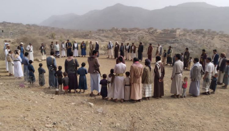 نظم أبناء منطقة الظهرة في مديرية الجميمة بمحافظة حجة وقفة دعماً لحملة إعصار اليمن وتدشينا للعام الثامن من الصمود.