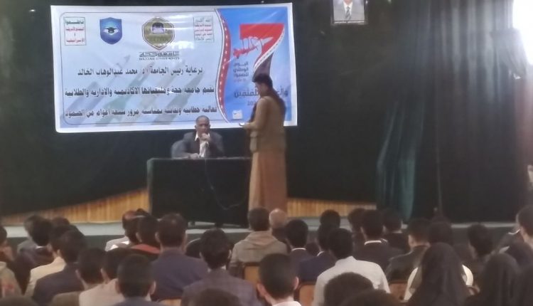 نظمت جامعة حجة بالتعاون مع ملتقياتها الأكاديمي والإداري والطالب الجامعي اليوم فعالية ثقافية باليوم الوطني للصمود.