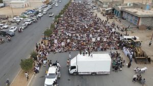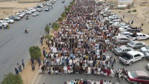 وأكد المشاركون في المسيرة التي أقيمت بمديرية عبس بمشاركة أبناء حرض وميدي وحيران وكذا مسيرات أسلم وكعيدنة وقفل شمر ووضرة استمرار النفير العام في مواجهة العدوان وإفشال مخططاته والتحشيد للجبهات ومساندة الجيش واللجان الشعبية في ميادين الصمود حتى تحقيق النصر.