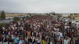 ورفعوا الشعارات المناهضة للعدوان والحصار المفروض على اليمن.. مؤكدين الاستجابة لدعوة القيادة الثورية والمجلس السياسي الأعلى للتفاعل مع حملة إعصار اليمن للتحشيد والاستنفار والمشاركة في صناعة النصر على قوى الغزو والاحتلال.
