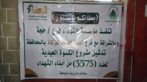 وفي الافتتاح بمدينة حجة، أشاد الصوفي بجهود مؤسسة الشهداء في توفير الرعاية والخدمات لأسر الشهداء، ومنها كسوة العيد، ومساهمة الهيئة العامة للزكاة في تنفيذ هذه المشاريع بنسبة 50 بالمائة.