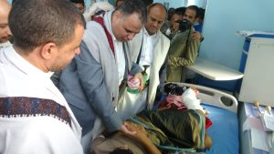 تفقد محافظ حجة هلال الصوفي وأمين عام محلي المحافظة إسماعيل المهيم اليوم، أحوال جرحى الجيش واللجان الشعبية بهيئة المستشفى الجمهوري بالمحافظة.
