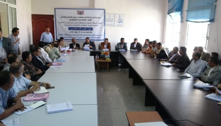 تهدف الورشة في يومين بحضور المحافظ، هلال الصوفي، وأمين عام المجلس المحلي، اسماعيل المهيم ، ووكلاء المحافظة والوكلاء المساعدين ومديري المكاتب التنفيذية بالمحافظة، إلى تعريف قيادة السلطة المحلية ومديري المكاتب التنفيذية بمضامين موجهات خطاب رئيس المجلس السياسي الأعلى لقيادات المحافظات خلال لقائه بهم ضمن فعاليات الورشة ومحددات وموجهات وأدبيات الورشة وآلية تحويلها إلى برنامج عمل تنفيذي على الواقع .