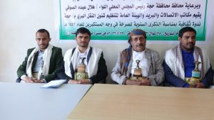 نظمت مكاتب الاتصالات والبريد وتنظيم شئون النقل البري بمحافظة حجة ندوة ثقافية بالذكرى السنوية للصرخة في وجه المستكبرين.