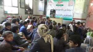وتطرقت كلمات ألقيت في المسيرات والأمسيات، إلى المراحل الأولى للشعار الذي أطلقه الشهيد القائد استشعاراً منه بالخطر والمسؤولية بتحذير الأمة وكيفية الاستعداد لمواجهة التحديات الأمريكية الصهيونية ضد الأمة.
