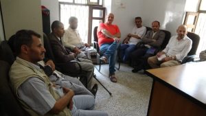 رافق في الزيارة مدراء البرامج بالمنظمة أكرم شحاتة وعمليات مشروع الغذاء بالمنظمة ماجد العليي ومكتب رؤيا أمل بحجة عبدالكريم مثقال وفرع صندوق المعاقين بالمحافظة يحيى النعمي.