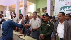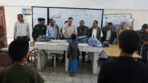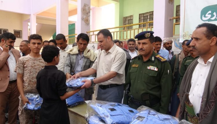 دشن محافظ حجة، هلال عبده الصوفي، اليوم، توزيع الزي الكشفي لطلاب المدارس الصيفية المغلقة.