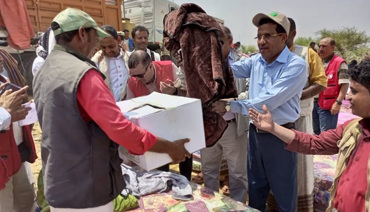 وزعت جمعية الهلال الأحمر اليمني بحجة بالتنسيق مع فرع المجلس الأعلى لإدارة وتنسيق الشئون الإنسانية بالمحافظة أدوات ومستلزمات إيوائية للنازحين بمديرية أسلم.