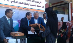 كرمت قيادة السلطة المحلية ومكتب التربية والتعليم بمحافظة حجة اليوم اوائل الجمهورية للمرحلة الثانوية بالمحافظة للعام الدراسي 2014 /2015 م وفي حفل التكريم الذي اقامته ثانوية اروي للبنات بحضور امين عام محلي حجة فهد دهشوش و عدد من وكلاء المحافظة والقيادات التربوية والتنفيذية هنأ دهشوش طلاب وطالبات المحافظة بهذه النتيجة المشرفة في امتحانات الثانوية علي مستوي الجمهورية ، وكذا اصحاب المراكز الاولي علي مستوي المحافظة مشيدا بالجهود المبذوله من قبل مكتب التربية والتعليم بالمحافظة ،والمديريات والمعلمين والمعلمات في مختلف مديريات المحافظة ، مؤكدا بان هذه النتيجة المشرفة تعبر عن مدي استشعار الجميع لمسئوليتهم الوطنية وجهودهم المبذوله في سبيل الارتقاء بالمستوي التعليمي لأبناء وبنات المحافظة .