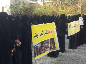 وفي البيان الختامي الصادر عن الوقفة استنكرن المشاركات الجرائم البشعة واللانسانية التي ترتكب كل يوم في حق اليمنين اطفالا ونساء وشيوخ واستهداف مقدرات البلاد مؤكدات بانهن ثابتات وصامدات رغم العدوان و لن يتأخرن في بذل الارواح والاموال والابناء فداء للوطن .