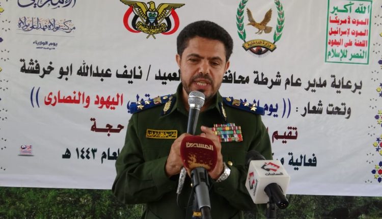 احتفت إدارة أمن محافظة حجة اليوم بذكرى يوم الولاية تحت شعار “يوم الولاية يحصن الأمة من تولي اليهود والنصارى”.