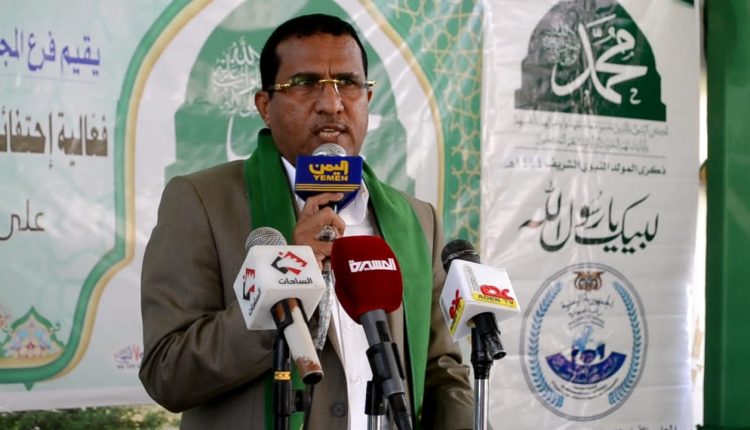 وفي الفعالية أشار امين عام المجلس المحلي بالمحافظة، إسماعيل المهيم، إلى أن الاحتفال المشرف بالمولد النبوي الشريف هو إحدى ثمار ثورة 21 سبتمبر بعد سنوات من التغييب، مؤكدا أن المناسبة الدينية الجليلة أصبحت تلقى اهتمام يليق بعظمة ومكانة الرسول الأعظم في القلوب.