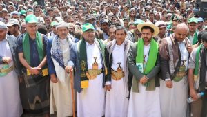 ولفت إلى أن الاحتفال بالمولد النبوي هذا العام يحمل دلالات كثيرة ومميّزة إلى جانب تجديد الولاء لله ورسوله، وحمدا لله تعالى على نعمة الرسول الأعظم، وثناء على الانتصارات التي يحققها أبطال الجيش واللجان الشعبية في ميادين الصمود، والمستوى الكبير الذي وصلت إليه المؤسستان العسكرية والأمنية، رغم كافة الظروف.