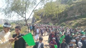 شهدت مديرية مبين محافظة حجة مسيرة طلابية احتفاء بالمولد النبوي الشريف على صاحبه وآله أفضل الصلاة وأتم التسليم .