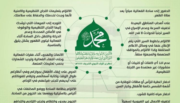 تعليمات للمشاركين في الفعاليات المركزية للمولد النبوي الشريف On أكتوبر 5, 2022 Share حجة نيوز Share FacebookTwitterGoogle+ReddItWhatsAppPinterestالبريد الإلكتروني