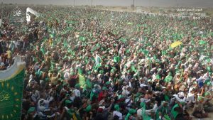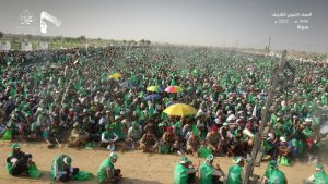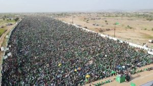 وجدد المحتشدون الولاء الصادق لله ورسوله والتمسك بالمنهج المحمدي في البذل والعطاء والتضحية والشجاعة والصدق والامانة والتسامح والتراحم .. معتبرين انتصارات أبطال الجيش واللجان الشعبية في ميادين الصمود وجبهات العزة والكرامة والتطور الذي شهدته المؤسستين العسكرية والامنية والصمود الاسطوري لأحفاد الأنصار إحدى ثمار التولي الصادق لله والرسول الأعظم باعتباره منهاج حياة للأمة للخلاص من العبودية.