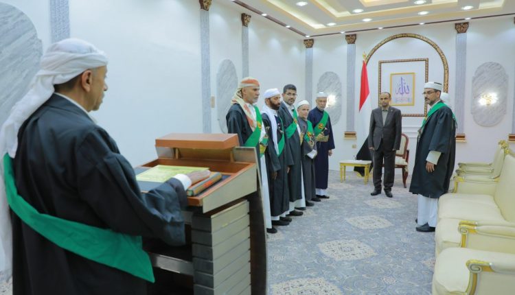 أدى اليمين القانونية أمام فخامة المشير الركن مهدي المشاط رئيس المجلس السياسي الأعلى اليوم، عدد من القضاة بمناسبة تعيينهم أعضاء في المحكمة العليا، بحضور رئيس مجلس القضاء الأعلى القاضي أحمد المتوكل ورئيس المحكمة العليا القاضي عصام السماوي.