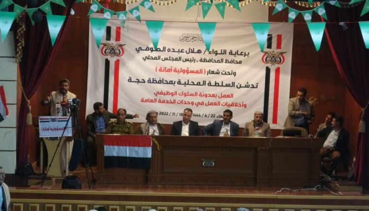 دشنت محافظة حجة، اليوم، العمل بمدونة السلوك الوظيفي، تحت شعار ” المسئولية أمانة” .