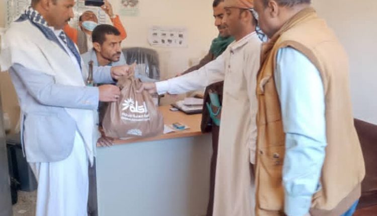 دشن بمديرية أفلح الشام محافظة حجة توزيع الزكاة العينية للأطفال المصابين بسوء التغذية .