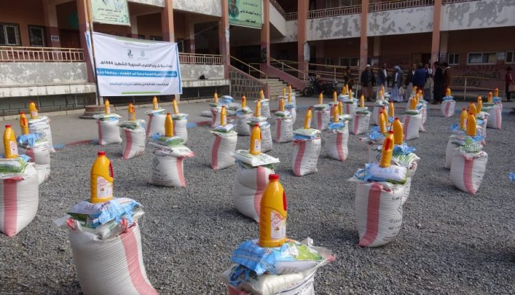دشن فرع الهيئة العامة لرعاية وتأهيل أسر الشهداء بمحافظة حجة، اليوم، توزيع سلال غذائية على أسر الشهداء في مديريات المحافظة بمناسبة الذكرى السنوية للشهيد.