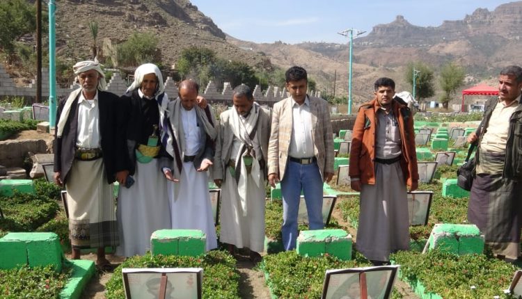 زار أمين عام محلي محافظة حجة إسماعيل المهيم ومنتسبو قطاع الإعلام في المحافظة، اليوم، روضة الشهداء في مدينة حجة بمناسبة الذكرى السنوية للشهيد.