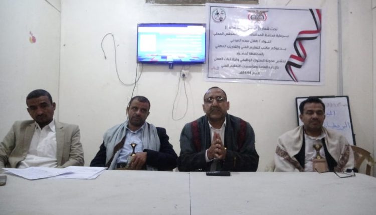 دشن مكتب التعليم الفني والتدريب المهني بمحافظة حجة اليوم العمل بمدونة السلوك الوظيفي في الإدارة العامة ومؤسسات التعليم الفني.