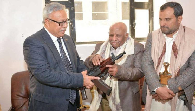 وجاء تسليم هدية قائد الثورة التي هي عبارة عن سلاح شخصي رشاش جفري ومسدس وأشياء أخرى، بحضور محافظي أبين صالح الجنيدي ولحج أحمد جريب وشبوة فريد العولقي وحضرموت لقمان باراس والمهرة القعطبي علي الفرجي ومدير مكتب رئيس الوزراء طه السفياني.
