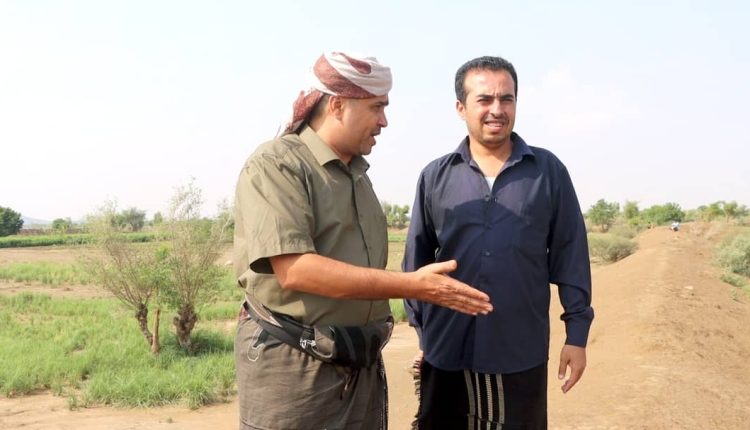 واستمع الوكيل عامر ومعه المدير الفني لوحدة تمويل المشاريع الزراعية أمين الصايدي إلى شرح عن سير العمل في المشروع الممول من اللجنة الزراعية العليا بقيمة 19 مليوناً و 700 ألف ريال، ويتضمن إنشاء جدران حماية للأراضي والحواجز الترابية لحمايتها من سيول الأمطار وعقوم ترابية لتحويل المياه لري الأراضي الزراعية.