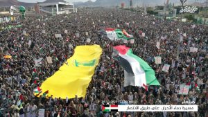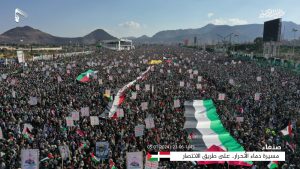 وأشار إلى أن هذه الحشود العظيمة والهائلة تبعث رسائل للشرق والغرب وإلى كل أرجاء العالم وتؤكد على ضرورة الاستمرار في التظاهر ودعم أشقائنا في غزة وفلسطين، والبذل والعطاء وتأييد كل الاجراءات التي تتخذها القيادة في القوة الصاروخية والطيران المسير والقوات البحرية وكل العمليات التي يمكن أن تتخذها وترى أنها مناسبة لردع هذا العدوان وإنهاء الحصار عن غزة وطرد المحتل من أرض فلسطين.