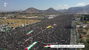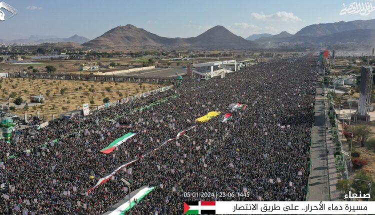 وأشار إلى أن هذا الجمع الكبير يعبر عن الوقوف والتضامن مع الأشقاء المظلومين والمحاصرين في غزة وفلسطين، وفي نفس الوقت يرسل رسالة واضحة لأعداء الله للإمبريالية العالمية والاستكبار العالمي ممثلا بأمريكا وبريطانيا وفرنسا ودول الكفر، وأضاف “نقول لهم إن ترهيبكم لن يثنينا عن موقفنا وقرارنا هذا، وعن مسيرتنا هذه، وإننا سنظل على هذا الدرب ثابتين وعليه سائرين، ولن يوقفنا شيء بإذن الله تعالى”.