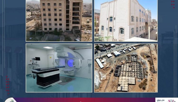 ولفت التقرير إلى أنه ترميم وتأهيل وحدة لوكيميا الأطفال بمستشفى الكويت الجامعي بصنعاء، بتكلفة 31 مليونا و 621 ألف ريال وترميم وتجهيز قسم الكشف المبكر لسرطان الثدي وعنق الرحم بمستشفى فلسطين بصنعاء، بتكلفة 32 مليونا و 853 ألف ريال، و مركز الطب النووي بهيئة مستشفى الثورة العام بصنعاء، بتكلفة 23 مليونا و 929 ألف ريال ، وقسم الأطفال وقسم النساء وبعض المرافق في المركز الوطني لعلاج الاورام بتكلفة 12 مليونا و 755 ألف ريال ، بالإضافة إلى إعادة تأهيل وصيانة الأجهزة التشخيصية للمركز الوطني لعلاج الأورام بتكلفة 32 مليونا و 831 ألف ريال.