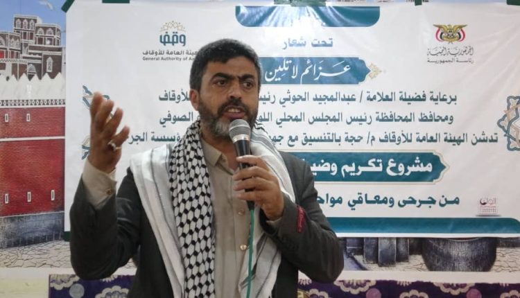 بدوره أكد مدير مكتب الهيئة العامة للأوقاف، محمد عيشان، ونائبه، إبراهيم النعمي ، حرص الهيئة على الاهتمام بمن كان لهم دور في التصدي للعدوان وصناعة ملحمة نصر اليمنيين.