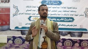 وفي فعالية التكريم بحضور وكيل المحافظة أحمد الأخفش ومديري جهاز الأمن والمخابرات والمكاتب وعدد من مديري المكاتب التنفيذية والعلماء ومسؤول الموارد البشريه، جهاد النعمي، ثمنت كلمة الجرحى والمعاقين اهتمام قائد الثورة السيد عبدالملك بدرالدين الحوثي بالجرحى والمعاقين واللفتة الكريمة من الهيئة العامة للأوقاف.