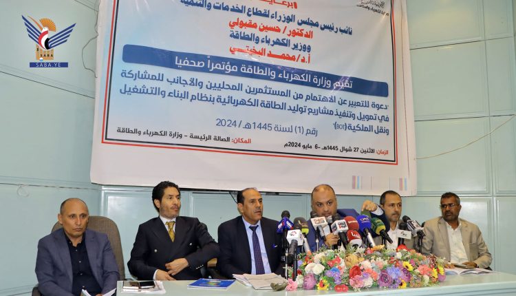 عقدت وزارة الكهرباء والطاقة اليوم مؤتمرًا صحفيًا للتعبير عن الاهتمام من المستثمرين المحليين والأجانب للمشاركة في تمويل وتنفيذ مشاريع توليد الطاقة الكهربائية بنظام البناء والتشغيل ونقل الملكية “البوت”.