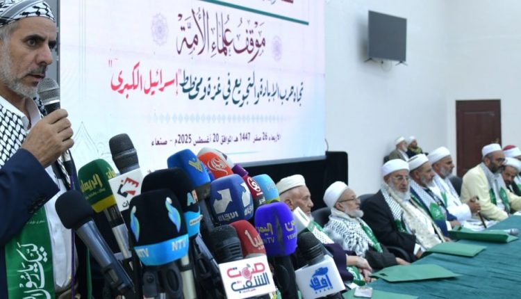 جاء ذلك في كلمة خلال مؤتمر علماء اليمن السنوي بعنوان “موقف علماء الأمة تجاه حرب الإبادة والتجويع في غزة ومخطط إسرائيل الكبرى”، نظمته رابطة علماء اليمن بمناسبة ذكرى المولد النبوي الشريف.
