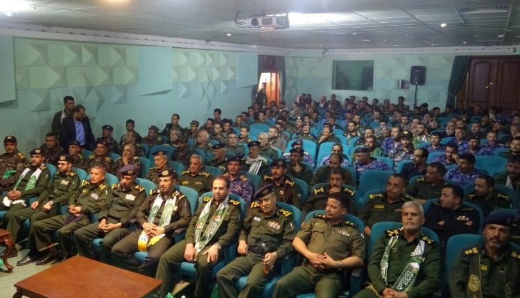 وفي الفعالية التي حضرها مدير أمن العاصمة اللواء الركن معمر هراش، ونائبه اللواء عبدالعزيز القدسي، أكد مدير عام التوجيه المعنوي والعلاقات العامة بوزارة الداخلية العميد حسن الهادي، أن الاحتفاء بذكرى مولد الرسول الأعظم يجسد عمق ارتباط اليمنيين به، ويؤكد تمسكهم بالرسالة والنهج المحمدي القويم.