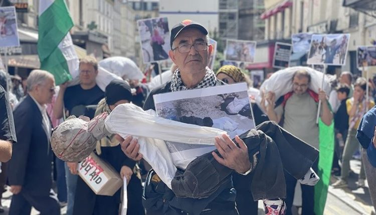 ونظم محتجون مسيرة في شارع “الشهداء” بالمنطقة التاسعة بباريس، رافعين بأيديهم أعلام فلسطين، ولافتات تطالب بإنهاء الإبادة والتجويع في غزة، وإدخال المساعدات الإنسانية للقطاع.