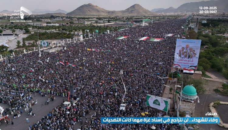 شهدت العاصمة صنعاء اليوم، حشداً جماهيرياً مليونياً في مسيرة “وفاء للشهداء.. لن نتراجع في إسناد غزة مهما كانت التضحيات”.