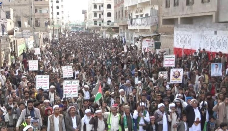 وأكدت الجماهير المحتشدة، أن أي عدوان على اليمن لا يمكن أن يثني الشعب اليمني عن موقفه الديني والأخلاقي والإنساني المساند للأشقاء في غزة والدفاع عن قضايا ومقدسات الأمة، وفي مقدمتها قضية فلسطين والأقصى.