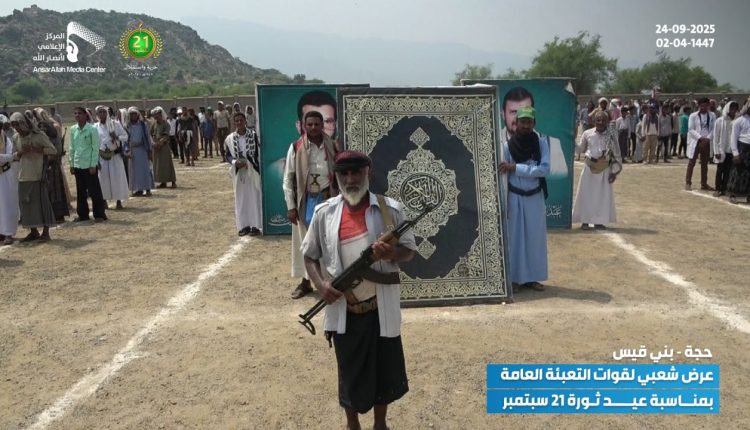 إلى ذلك نظمت التعبئة في مديرية بني قيس عرضا شعبياً لقوات التعبئة بمناسبة العيد الـ11 لثورة 21 سبتمبر.