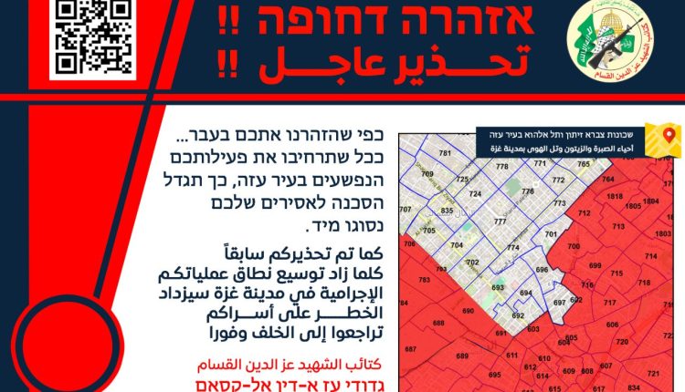 وقالت الكتائب، في رسالة تحذير، كما تم تحذيركم سابقاً، كلما زاد توسيع نطاق عملياتكـم الإجرامية في مدينة غزة سيزداد الخطـــــــر على أســــراكم، تراجعوا إلى الخلف وفوراً.